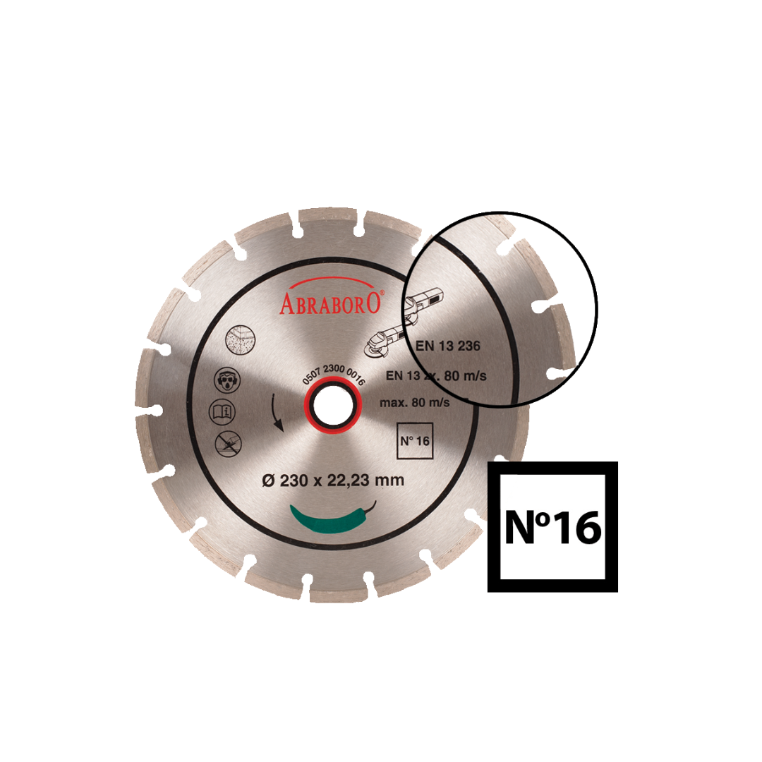 Abraboro dijamantna rezna ploča univerzalna segmentirana 115x22mm namijenjena je preciznom i učinkovitom rezanju različitih građevinskih materijala. Ova univerzalna dijamantna ploča omogućuje rezanje betona, cigle, kamena, betonskih blokova i sličnih tvrdih materijala koji se često koriste u građevinskim i renovacijskim radovima. Promjer od 115 mm idealan je za standardne kutne brusilice koje se koriste u radionicama, na gradilištima i kod kućnih projekata. Otvor od 22 mm omogućuje jednostavno i sigurno postavljanje ploče na alat. Segmentirana konstrukcija reznog ruba omogućuje učinkovito hlađenje tijekom rada i brzo uklanjanje materijala iz reza. Takav dizajn smanjuje zagrijavanje ploče i produžuje njezin radni vijek čak i pri intenzivnoj uporabi. Kvalitetna dijamantna zrna osiguravaju stabilne performanse i precizne rezove kroz različite građevinske materijale. Abraboro dijamantne ploče poznate su po visokoj kvaliteti i pouzdanosti, zbog čega su čest izbor profesionalnih majstora i građevinskih tvrtki. Ploča omogućuje stabilan rad uz smanjene vibracije, što korisniku daje bolju kontrolu tijekom rezanja. Posebno je pogodna za suho rezanje, ali se može koristiti i uz hlađenje vodom kako bi se dodatno produžio vijek trajanja ploče. Abraboro univerzalna segmentirana dijamantna ploča 115x22mm predstavlja pouzdano rješenje za profesionalne i kućne radove gdje su potrebni snaga, preciznost i dugotrajnost.