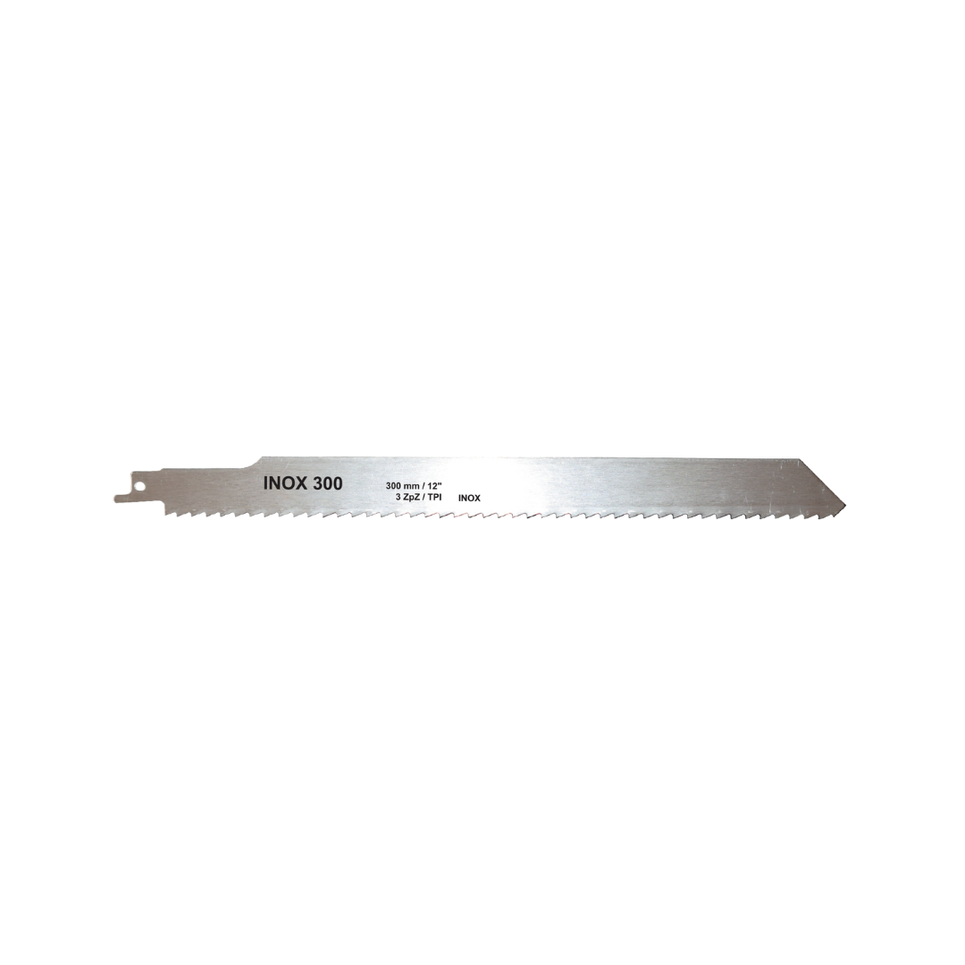 Abraboro list za recipročnu pilu 300 mm inox namijenjen je za precizno i učinkovito rezanje nehrđajućeg čelika i drugih metalnih materijala. Izrađen je od visokokvalitetnog bimetalnog materijala koji osigurava visoku otpornost na trošenje i dug vijek trajanja. Duljina od 300 mm omogućuje rezanje debljih materijala i veću fleksibilnost pri radu. Posebno oblikovani zubi omogućuju čiste rezove i smanjuju vibracije tijekom rada. Kompatibilan je s većinom recipročnih pila, što ga čini praktičnim izborom za profesionalce i zahtjevne korisnike.