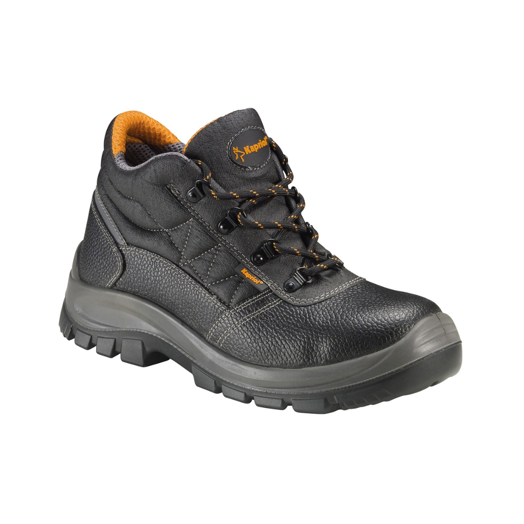 KAPRIOL Hornet radne cipele duboke crne S3 SRC 44 namijenjene su profesionalcima koji rade u teškim i zahtjevnim uvjetima te trebaju maksimalnu zaštitu stopala. Duboki kroj pruža dodatnu potporu gležnju i stabilnost pri kretanju na neravnim površinama. S3 zaštitna kategorija uključuje zaštitnu kapicu, međupotplat otporan na probijanje i vodoodbojni gornji dio, što omogućuje siguran rad i u vlažnim okruženjima. SRC protuklizni potplat osigurava pouzdano prianjanje na keramičkim i čeličnim podlogama. Crni, robusni dizajn čini ove cipele idealnim izborom za gradilišta, industriju, skladišta i vanjske radove.