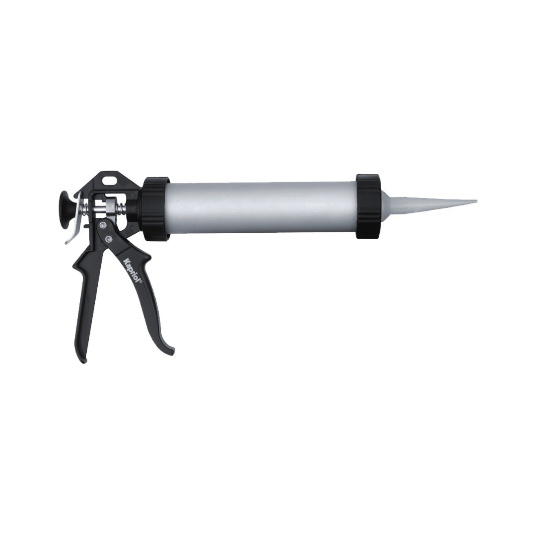 KAPRIOL pištolj za brtvila 600ml je profesionalni alat dizajniran za preciznu i učinkovitu primjenu brtvila u građevinskim, montažnim i renovacijskim projektima. Pištolj omogućuje ravnomjerno istiskivanje brtvila, smanjujući otpad i osiguravajući čiste spojeve na različitim površinama poput drva, metala, keramike i plastike. Izrađen je od izdržljivih materijala koji pružaju dugotrajnu upotrebu i pouzdan rad, a ergonomska ručka osigurava udobno držanje i precizno upravljanje tijekom nanošenja. Idealan je za profesionalce i hobiste koji žele postići precizne, dugotrajne i kvalitetne rezultate pri brtvljenju spojeva, pukotina i spojeva oko prozora i vrata.