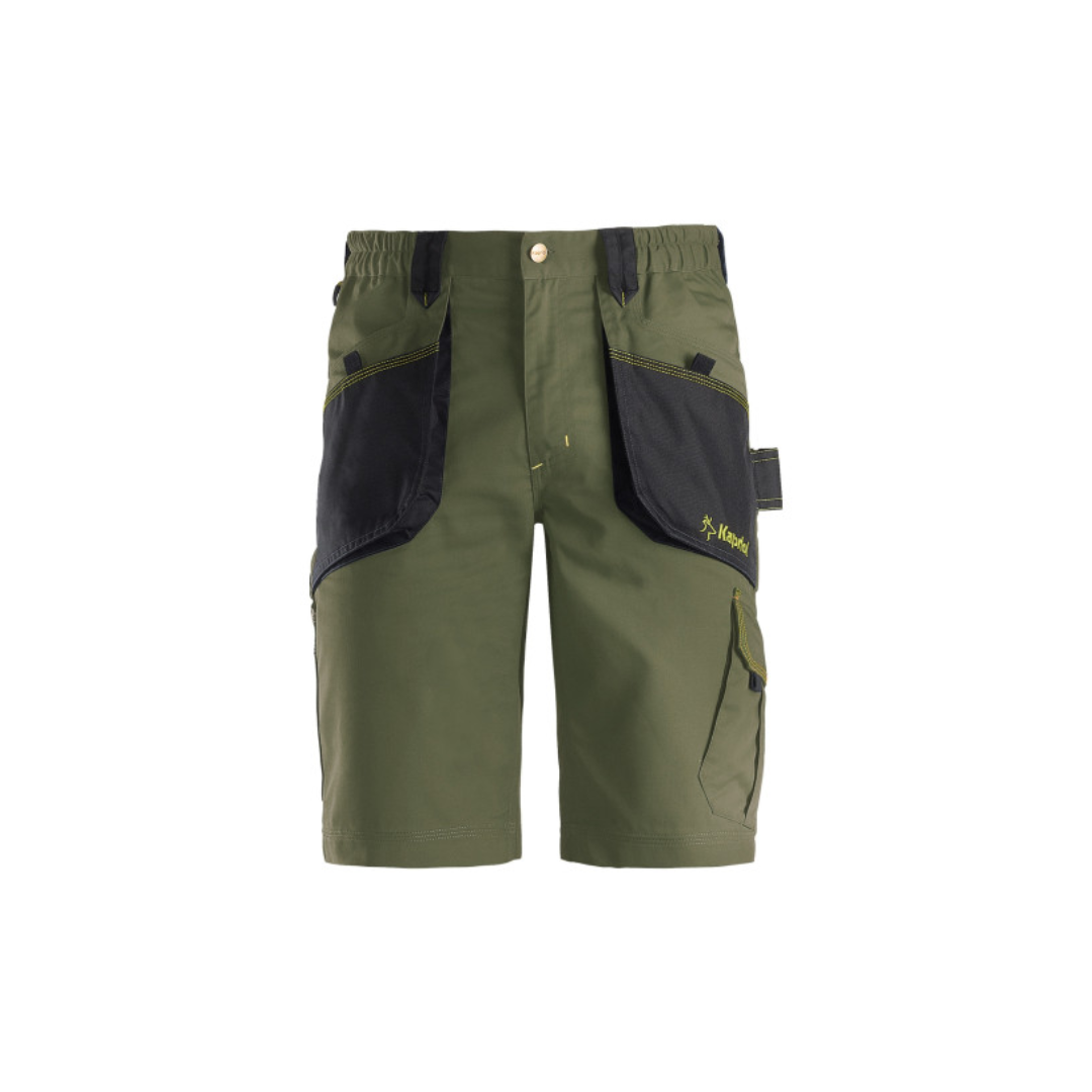 KAPRIOL Slick zaštitne kratke hlače u zelenoj boji, veličina XXXL, dizajnirane su za udoban i funkcionalan rad u toplijim vremenskim uvjetima. Izrađene su od kvalitetnog i izdržljivog materijala koji osigurava dugotrajnost i otpornost na svakodnevno trošenje. Ergonomski kroj omogućuje slobodu kretanja, dok višestruki praktični džepovi pružaju dovoljno prostora za alat i osobne predmete. Zelena boja daje radni i profesionalni izgled, a kratki kroj čini ove hlače idealnim izborom za radionice, skladišta i vanjske radove tijekom ljeta.