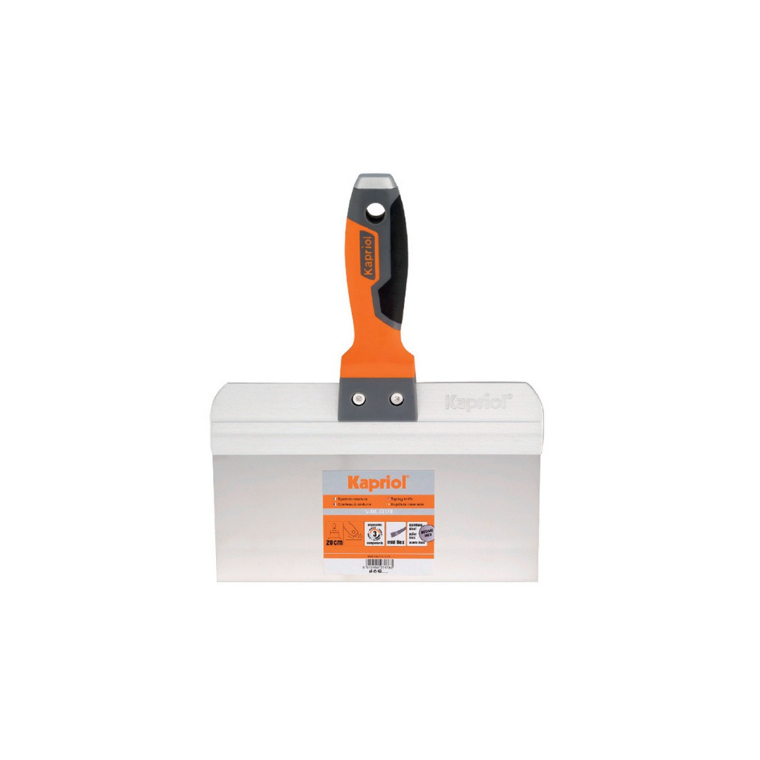 Kapriol špahtla fasadna 200mm izrađena je od visokokvalitetnog inox čelika. Dizajnirana je za profesionalce koji trebaju precizan, izdržljiv i dugotrajan alat za fasaderske, gletarske i završne radove. Inox materijal osigurava otpornost na koroziju i jednostavno čišćenje.