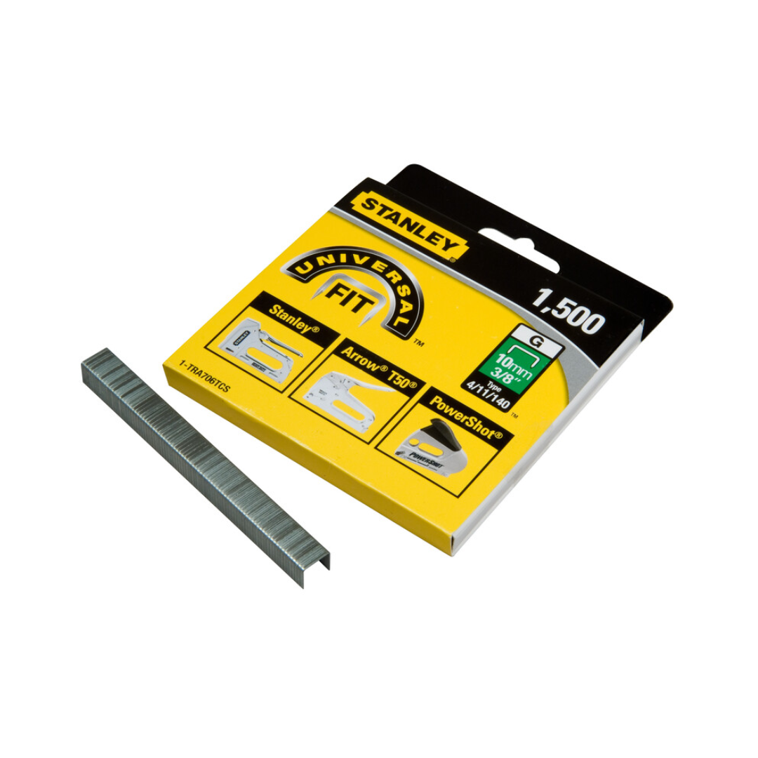 Stanley spajalice “G” 10 mm (4/11/140) 1000 kom namijenjene su preciznom pričvršćivanju lakših i tanjih materijala u stolarskim, tapetarskim i montažnim radovima. Duljina od 10 mm idealna je za rad s tankim drvom, pločama, tkaninama, folijama i drugim osjetljivijim materijalima gdje je potrebna manja dubina učvršćivanja.